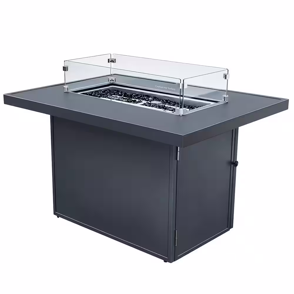 None 55000 BTU Aluminum Alloy Fire Pit Table Outdoor with Glass Wind Guard for Garden Patio