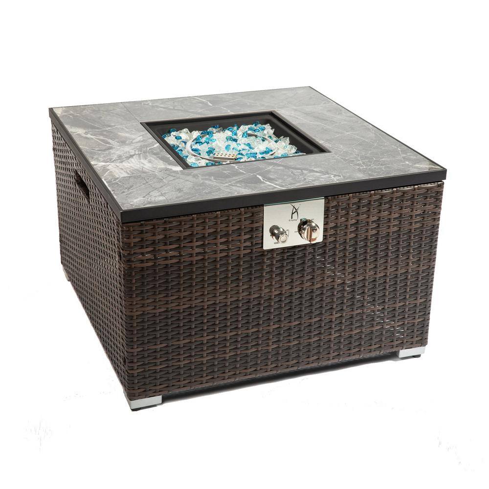 None 32 in. x 32 in. 40000 BTU Square Wicker Propane Outdoor Fire Pit Table with Glass Rocks, Dark Brown