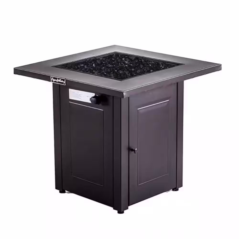 None 28 in. W x 28 in. H Brown Outdoor Square Metal Propane Gas Fire Pit Table Patio Dining Table Fire Table with Lava Stones