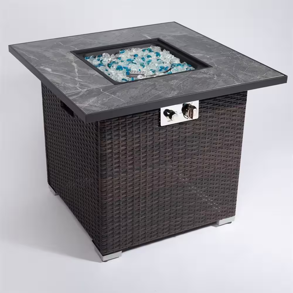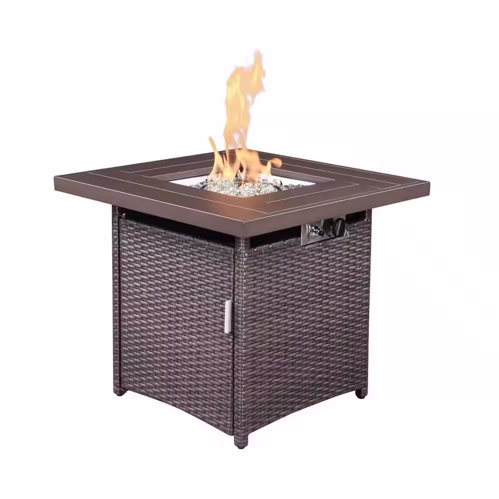 None 29.92 in. W x 24.80 in. H Dark Brown Outdoor 50000 BTU Square PE Wicker Propane Gas Fire Pit Table with Glass Windshield