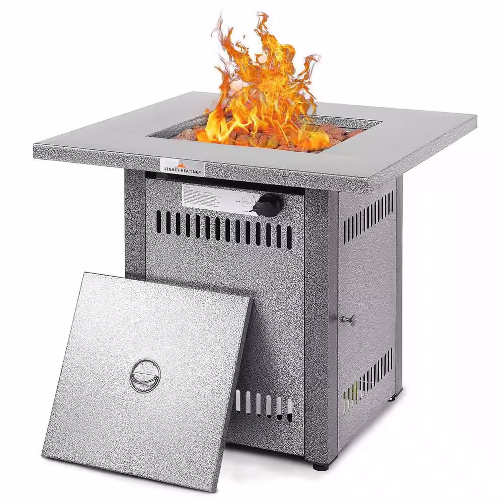 None 28 in. x 28 in. Square Metal Propane Fire Pit Table in Brown with Lid, ETL Certification, for Garden Backyard Deck