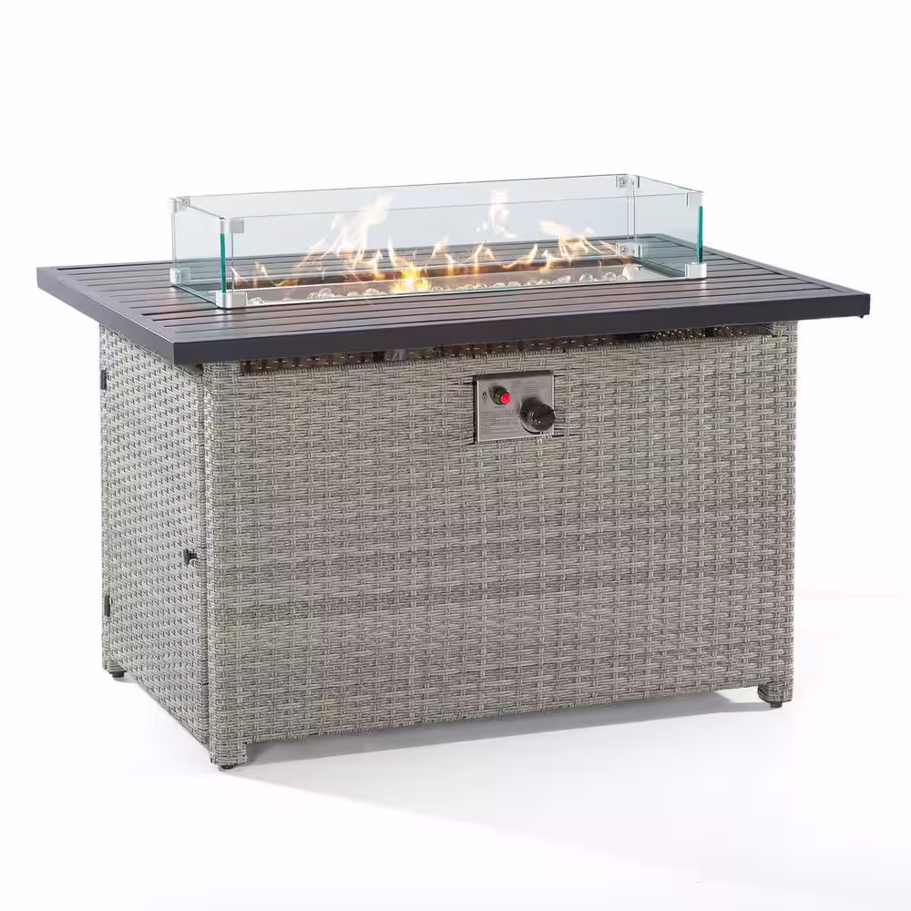 None 43 in. 50000 BTU Wicker Outdoor Propane Gas Fire Pit Table with Glass Wind Guard