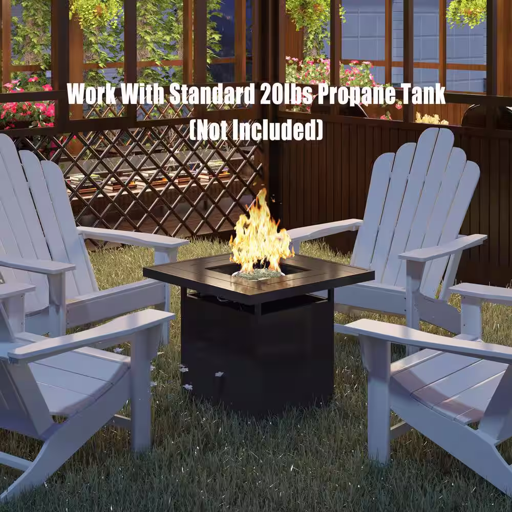 Kadehome 28 in. Square Outdoor Fire Pit Table with Glass Bead Set
