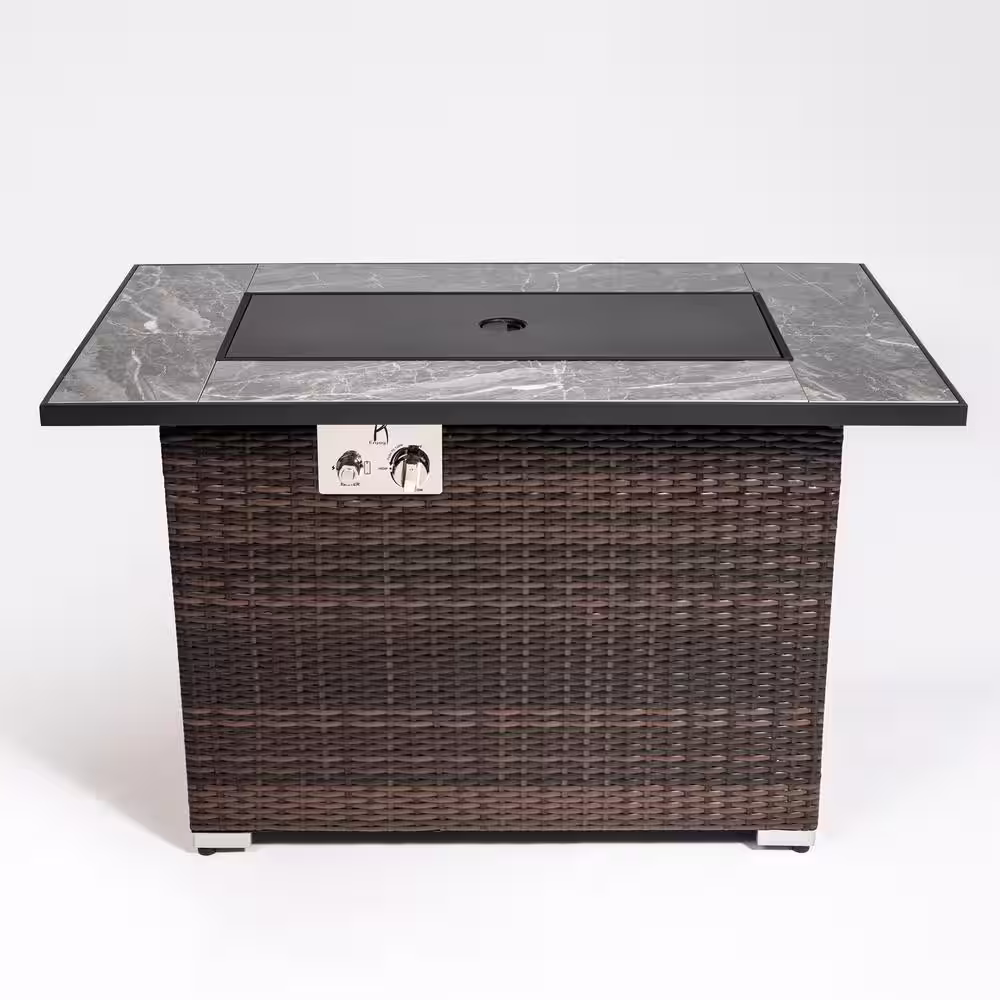 None Brown 44 in. Wicker Outdoor Gas Fire Pit Table, Propane Fire Table with Ceramic Tabletop