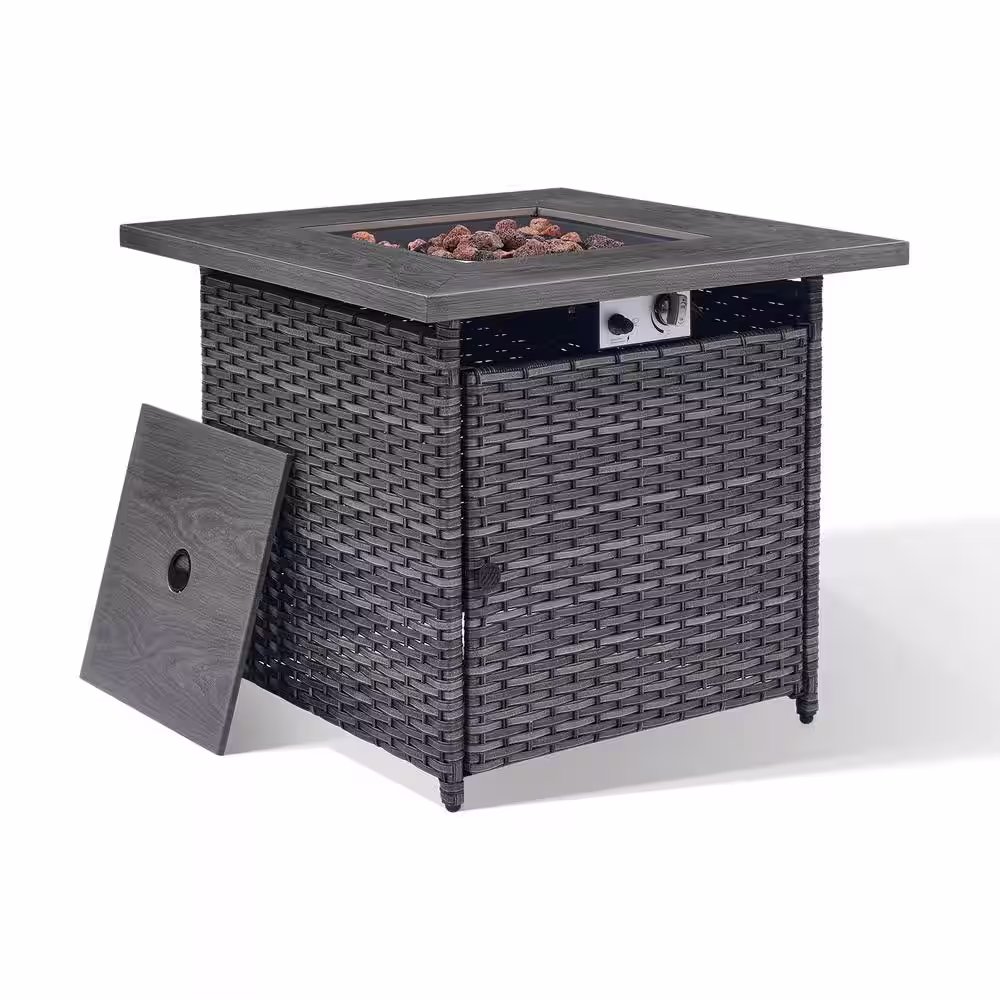 None 23.60 in. W x 28.70 in. H Dark Brown Outdoor 50000 BTU Square PE Wicker Propane Fire Pit Table with Glass Windshield