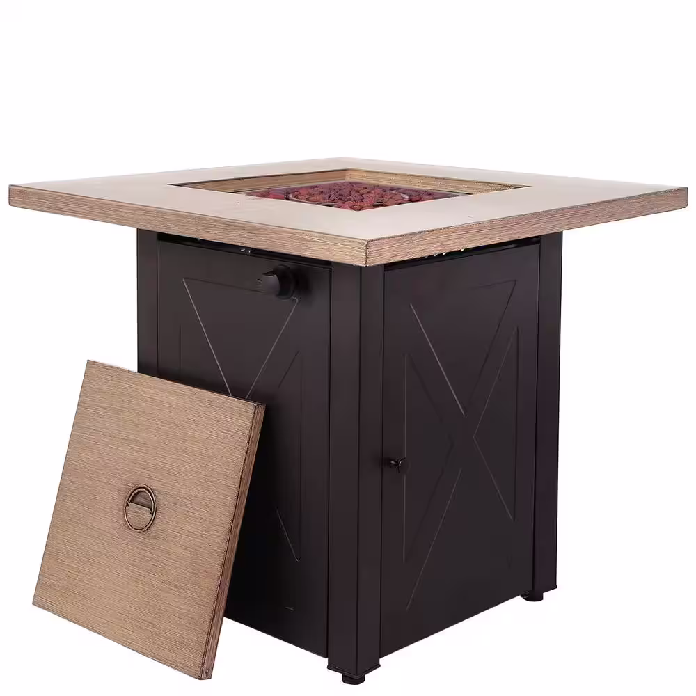 Sireck 28 in. Brown Square Metal Steel Fire Pit Table