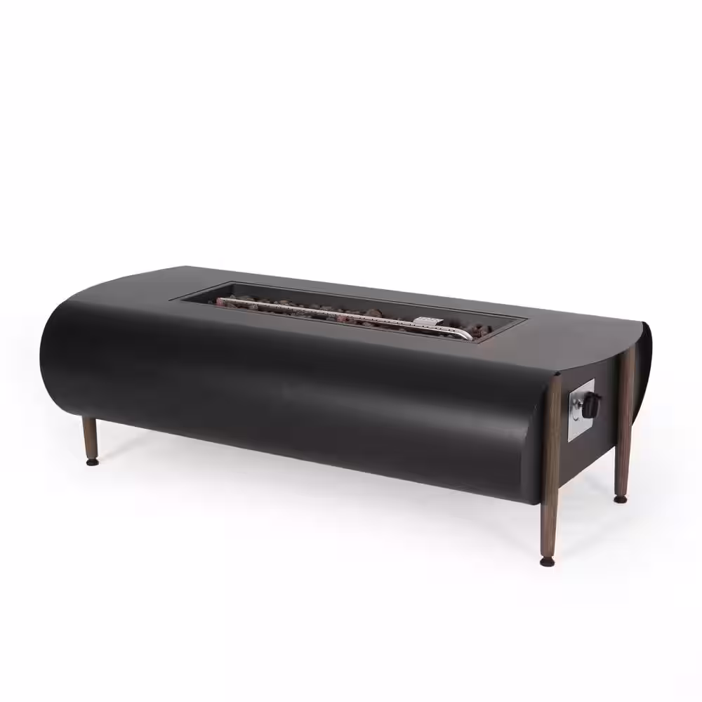 None Black Steel Fire Pit Table