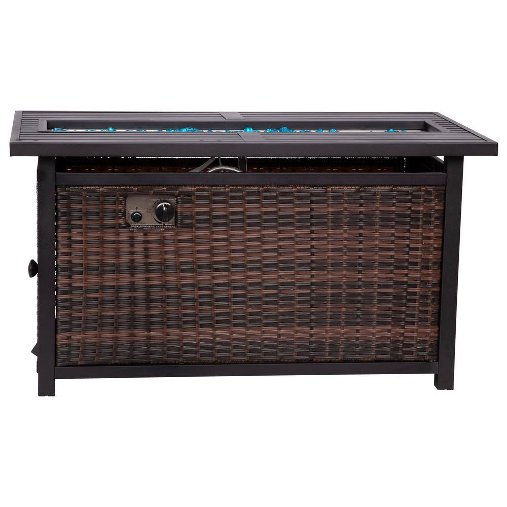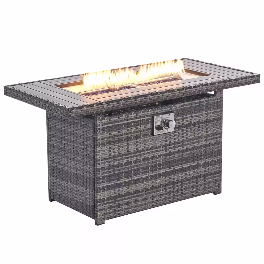 None 44 in. 50,000 BTU Rectangular Gray Wicker Outdoor Fire Pit Table with Rain Cover Propane Gas