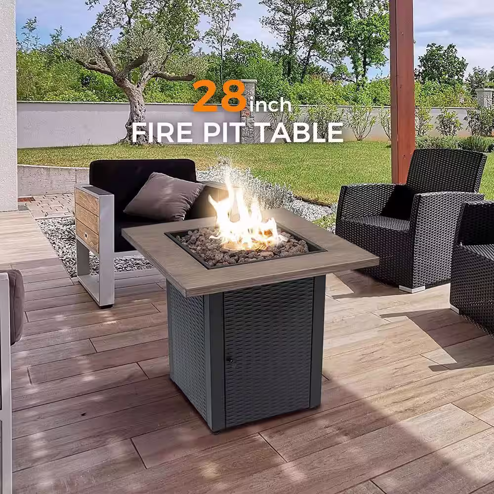 None 48000 BTU Square 28 in. Outdoor Metal Propane Gas Fire Pit Table