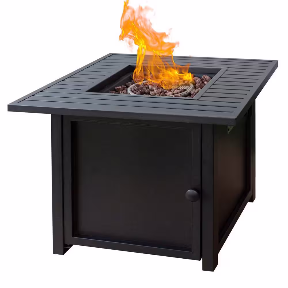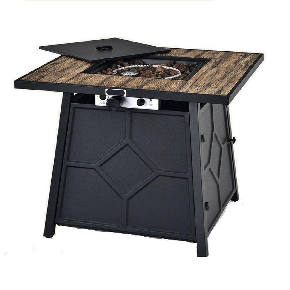None 23.8 in. H x 31.75 in. W Outdoor 40000 BTU Square Black Metal Natural Gas Fire Pit Table