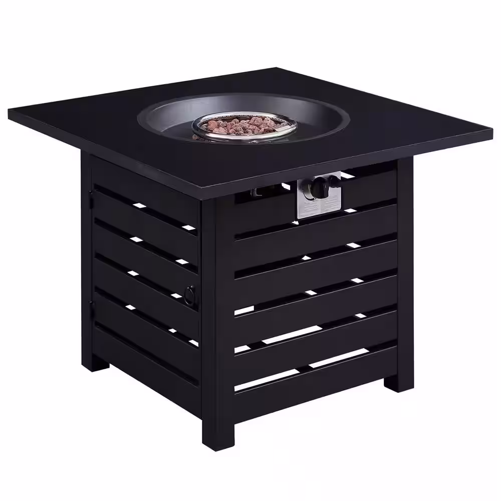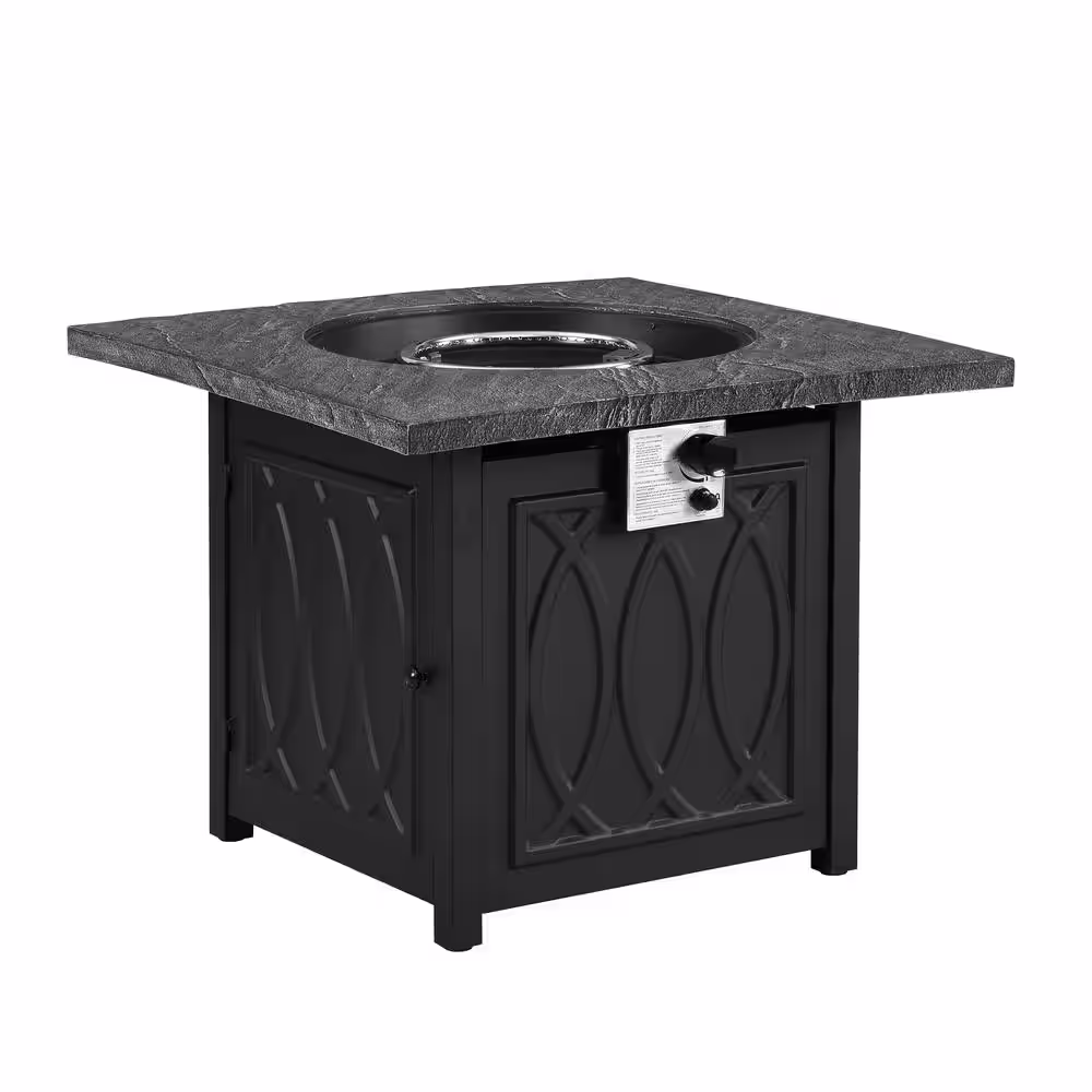 None 23.8 in. H x 31.75 in. W Outdoor 40000 BTU Square Black Metal Natural Gas Fire Pit Table