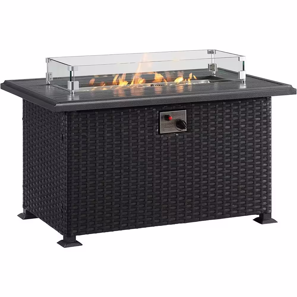 None 28 in. 50000 BTU Metal Propane Fire Pit Table (Black)