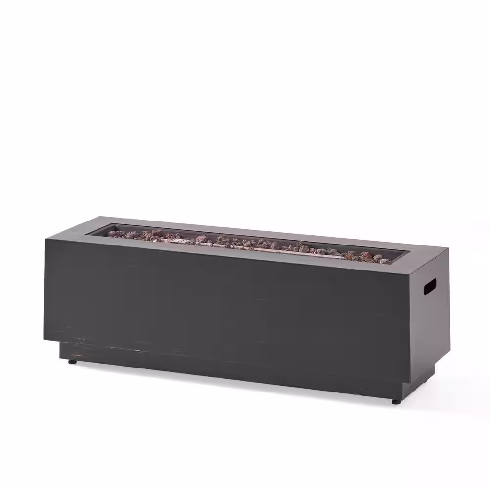 Noble House Reign Brushed Brown Rectangular Metal Fire Pit (No Tank Holder)