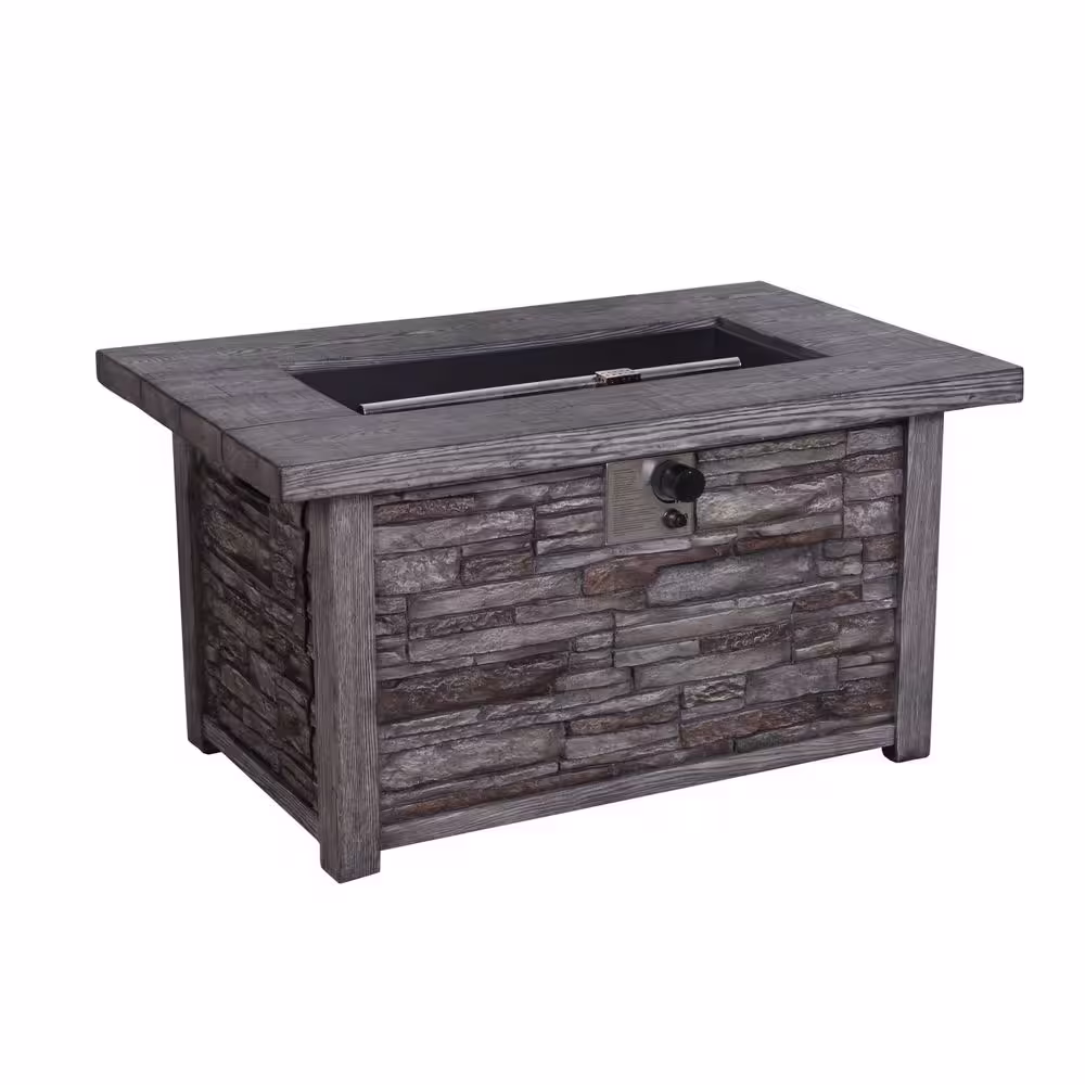 CASAINC 43.5 in. 50,000 BTU Rectangular Outdoor Propane Gas Brown Fire Pit Table with Lava Rock and Waterproof Cover