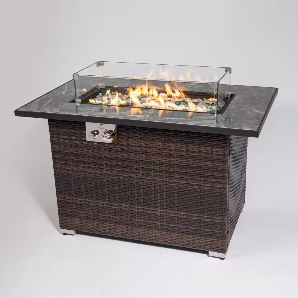 None 40,000BTU Outdoor Fire Table Gas Fire Pit Rattan Gas Fire Table, Gas Fire Table with Tile Tabletop
