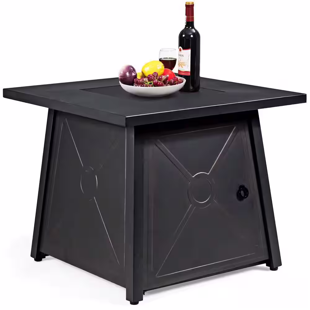 None 23.8 in. H x 31.75 in. W Outdoor 40000 BTU Square Black Metal Natural Gas Fire Pit Table