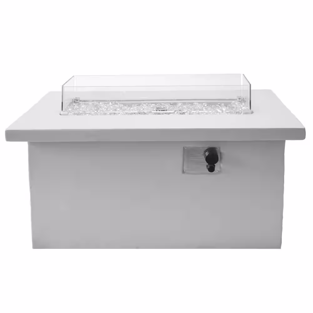 BLUEGRASS LIVING 42 Inch x 20 Inch Rectangular MGO Propane Fire Pit Table with Glass Wind Guard, Crystal Glass Beads