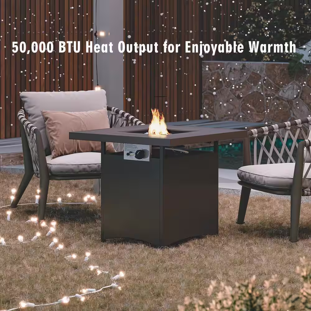 Mondawe 28 in. 50,000 BTU Brown Frame Square Metal Outdoor Propane Gas Fire Pit Table with Fire Glass for Patio, Balcony