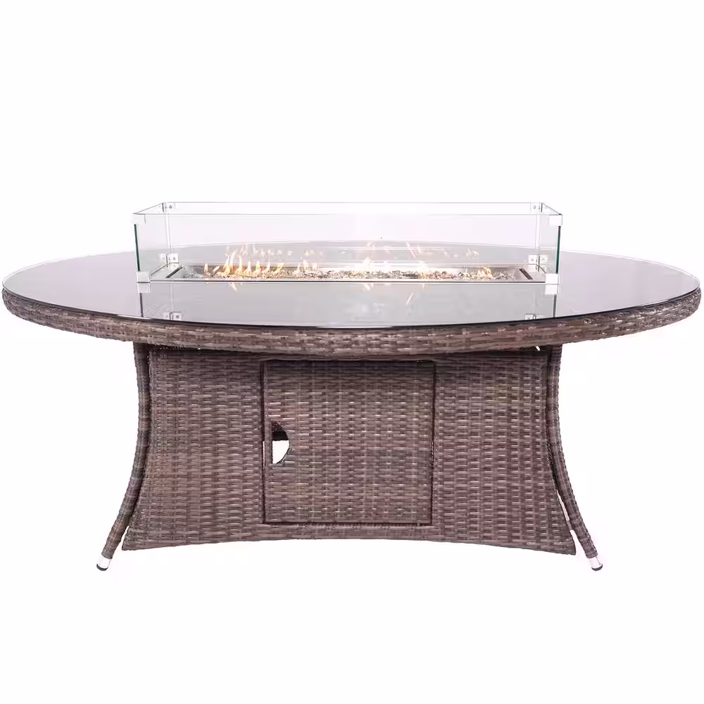 DIRECT WICKER Turnbury 47 in. x 71 in. Propane Oval Wicker Gas Fire Pit Table with Tempered Glass Surround