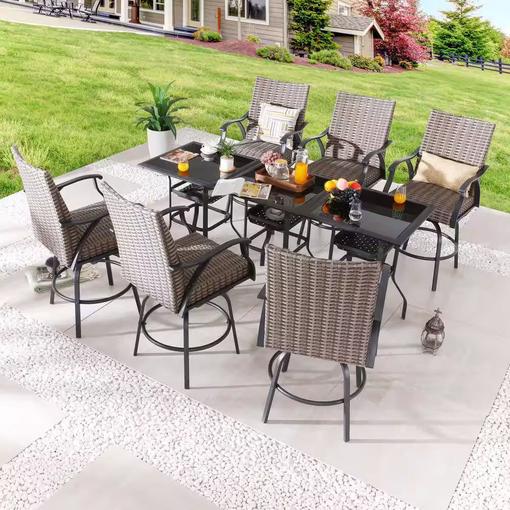 Patio Festival 9-Piece Wicker Bar Height Outdoor Dining Set