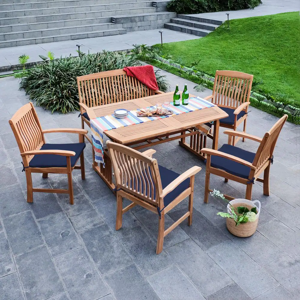 Cambridge Casual Caterina 6-Piece Teak Wood Outdoor Dining Set with Navy Cushion
