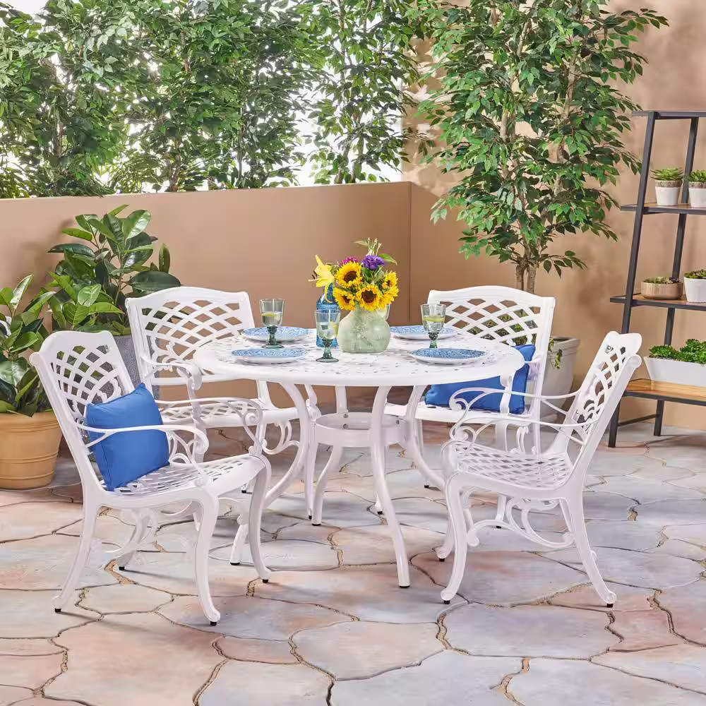 Noble House Phoenix White 5-Piece Aluminum Outdoor Dining Set