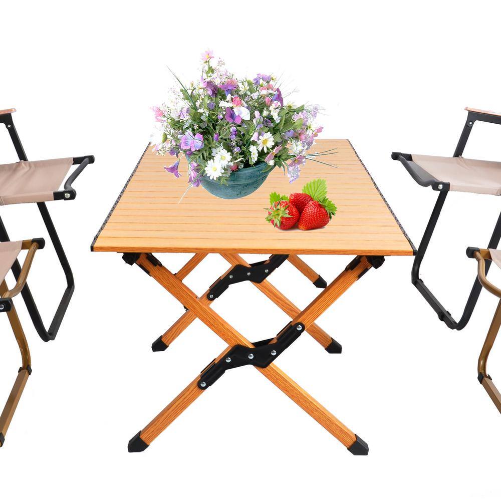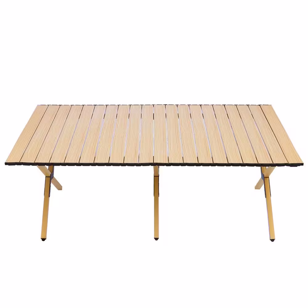None Brown Rollable Aluminum Alloy Table Top Portable Picnic Table with Folding Solid X-Shaped Frame and Handbag