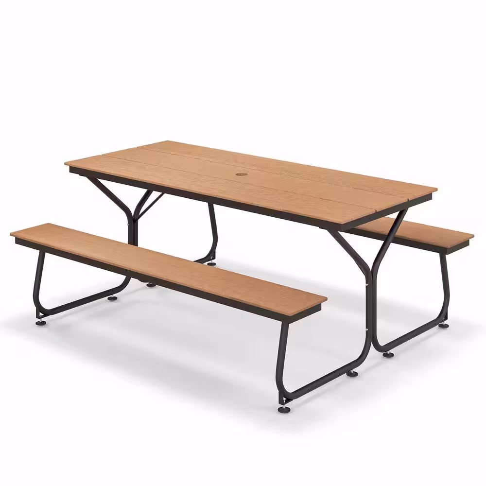 ANGELES HOME 6 ft. Outdoor Metal Rectangular Picnic Table Bench Set for 6-People to 8-People Brown