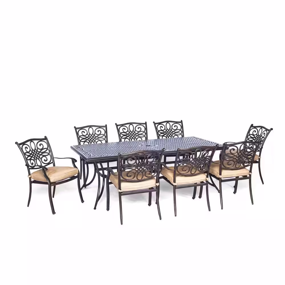 Hanover Traditions 9-Piece Aluminium Rectangular Patio Dining Set with Natural Oat Cushions