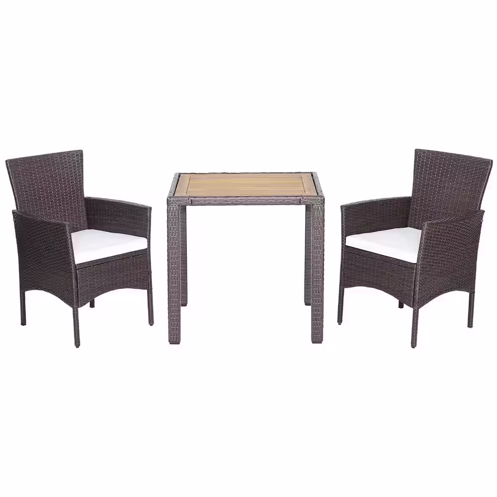 Costway 3-Piece Wicker Outdoor Dining Set Acacia Wood Table Top with Off White Cushions Chairs Garden