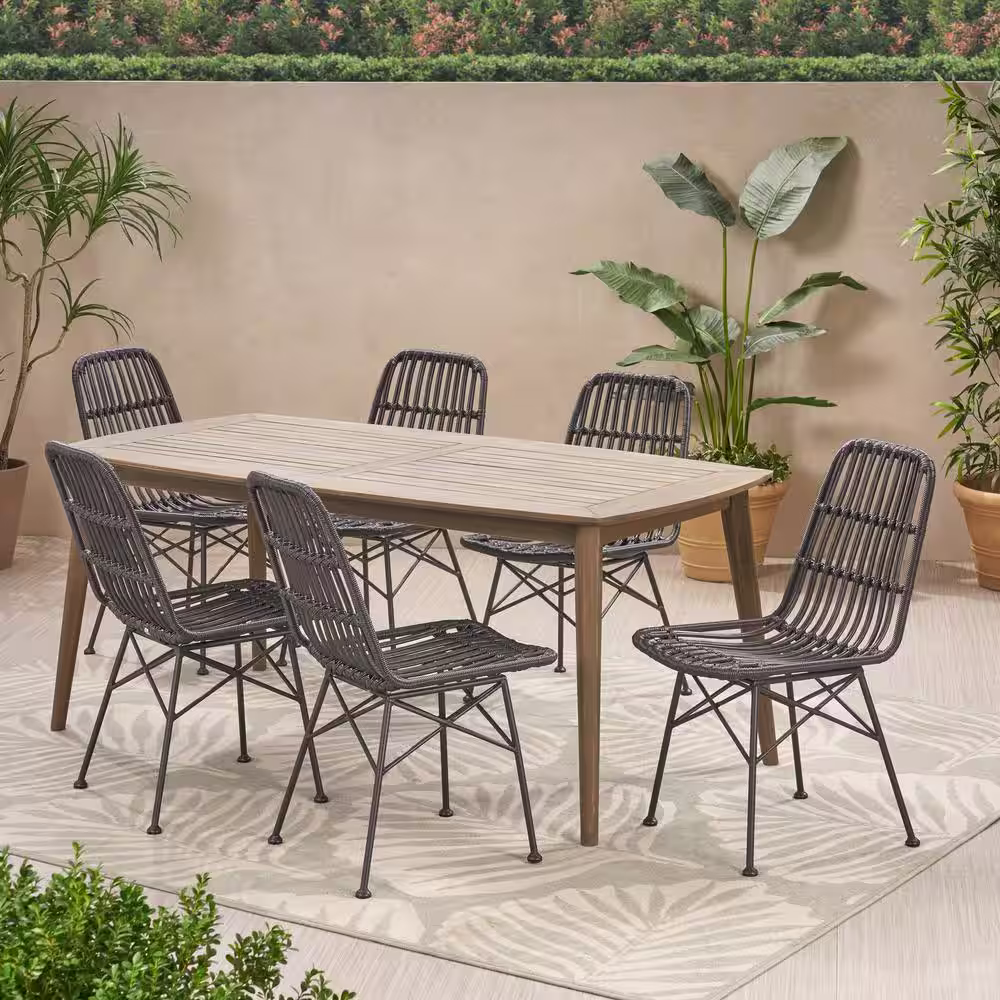 Noble House Sawtelle Grey 7-Piece Wood Rectangular Outdoor Dining Set