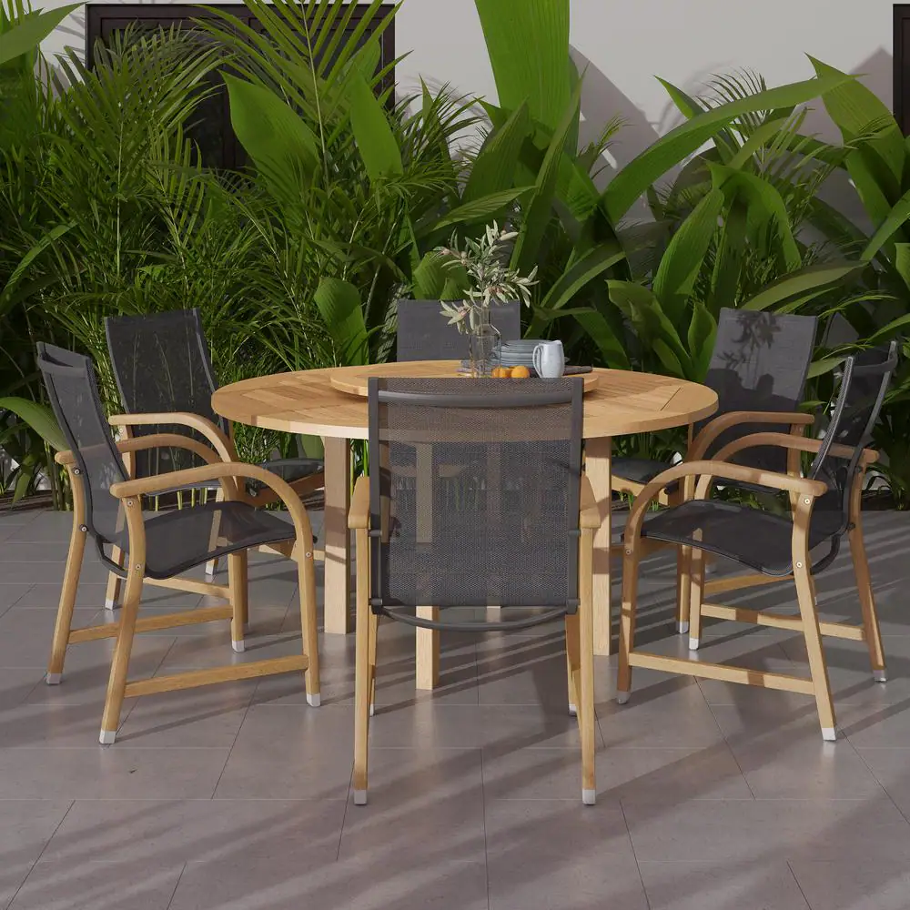 Amazonia Naty Lazy Susan 7-Piece Wood Round Outdoor Dining Set