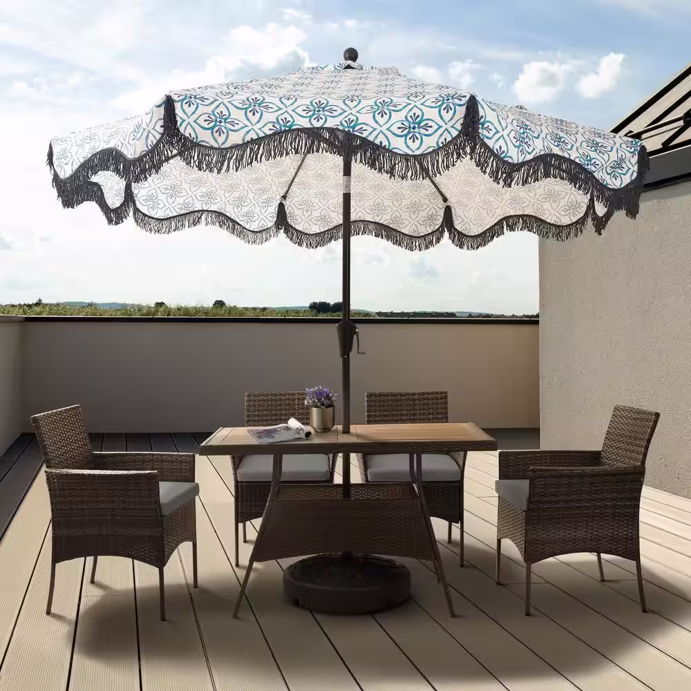 Teamson Home Brown 5-Pieces Rattan Outdoor Patio Dining Set with Gray Cushion and Armchair