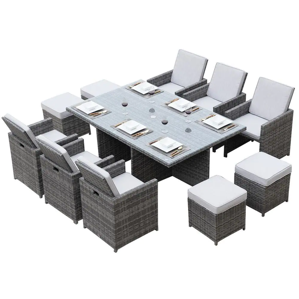 moda furnishings Boise Grey 11-Piece Wicker Outdoor Dining Set with Grey Cushions