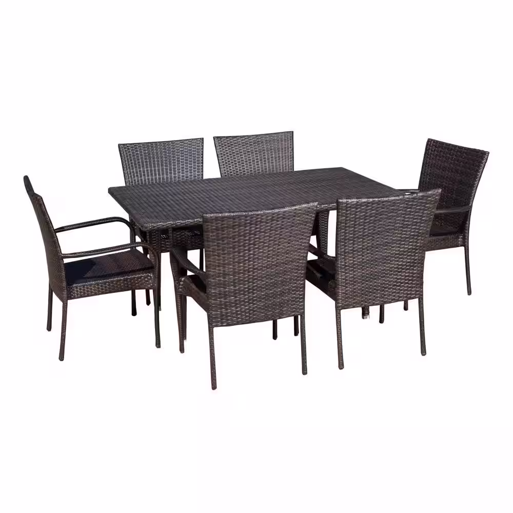 Noble House Multi-Brown 7-Piece Faux Rattan and Metal Rectangular Outdoor Dining Set