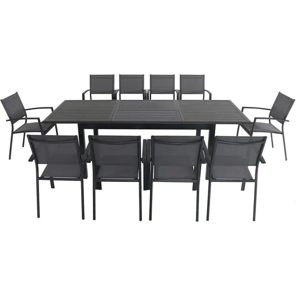 Hanover Cameron 11-Piece Aluminum Outdoor Dining Set with 10 Sling Dining Chairs and an Expandable Table