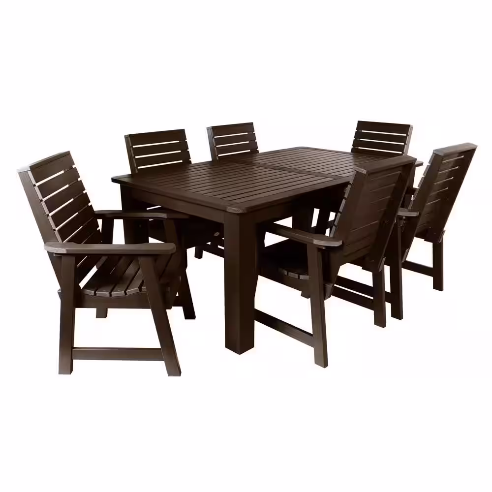 Highwood Weatherly Weathered Acorn 7-Piece Recycled Plastic Rectangular Outdoor Dining Set