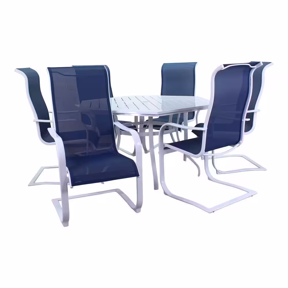 Courtyard Casual Santa Fe White Aluminum Outdoor 7-Piece Hexagon Dining Set with 60 in. Hexagon Table and 6 Spring Chairs