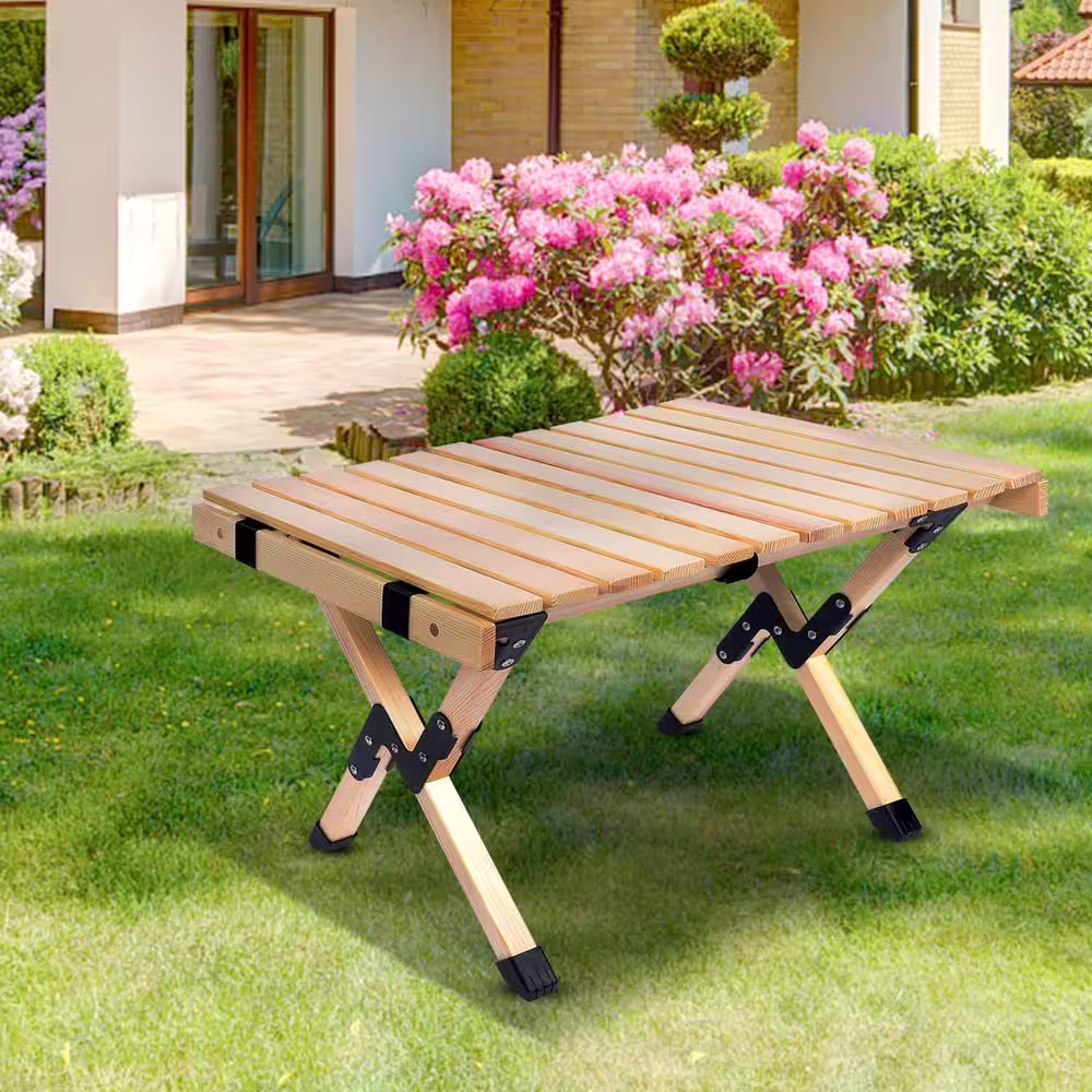 None Portable Roll Up Folding Wooden Camping Picnic Table with Carry Bag