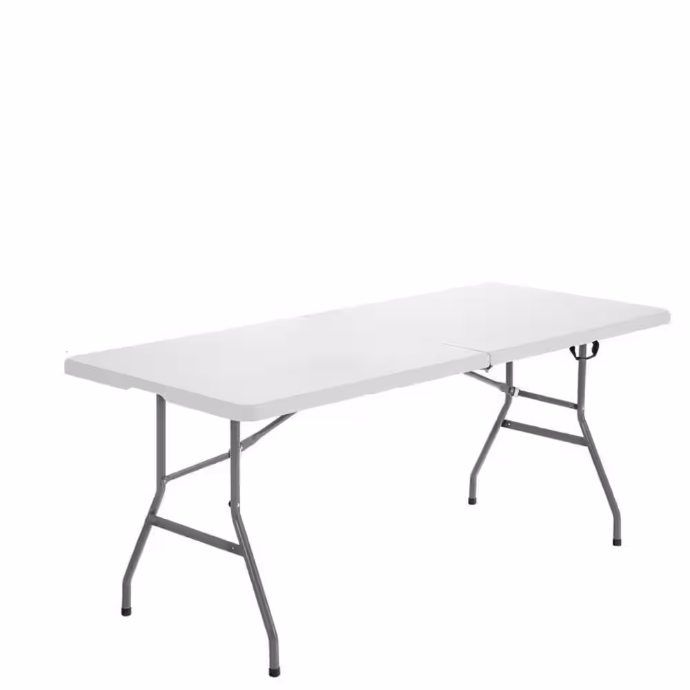 None White Metal Portable Folding Outdoor Picnic Table with Carrying Handle