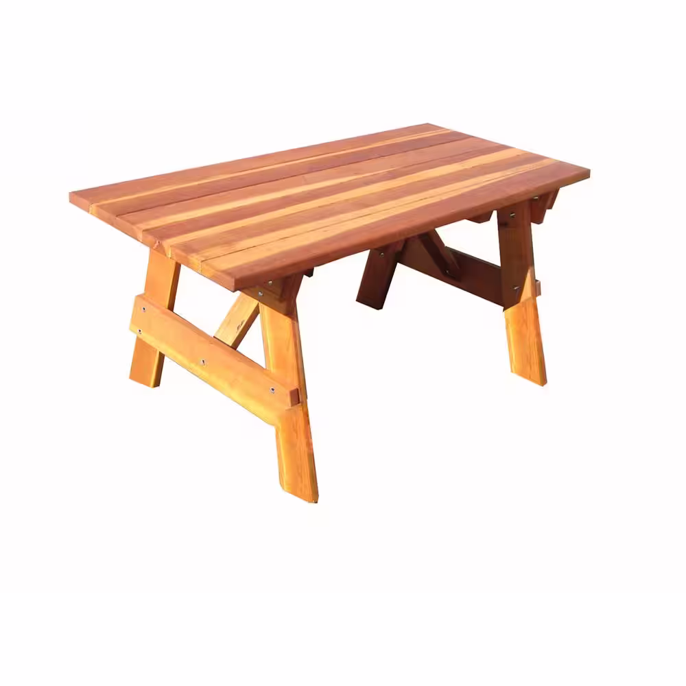 None Outdoor 1905 Super Deck Finished 6 ft. Redwood Picnic Table