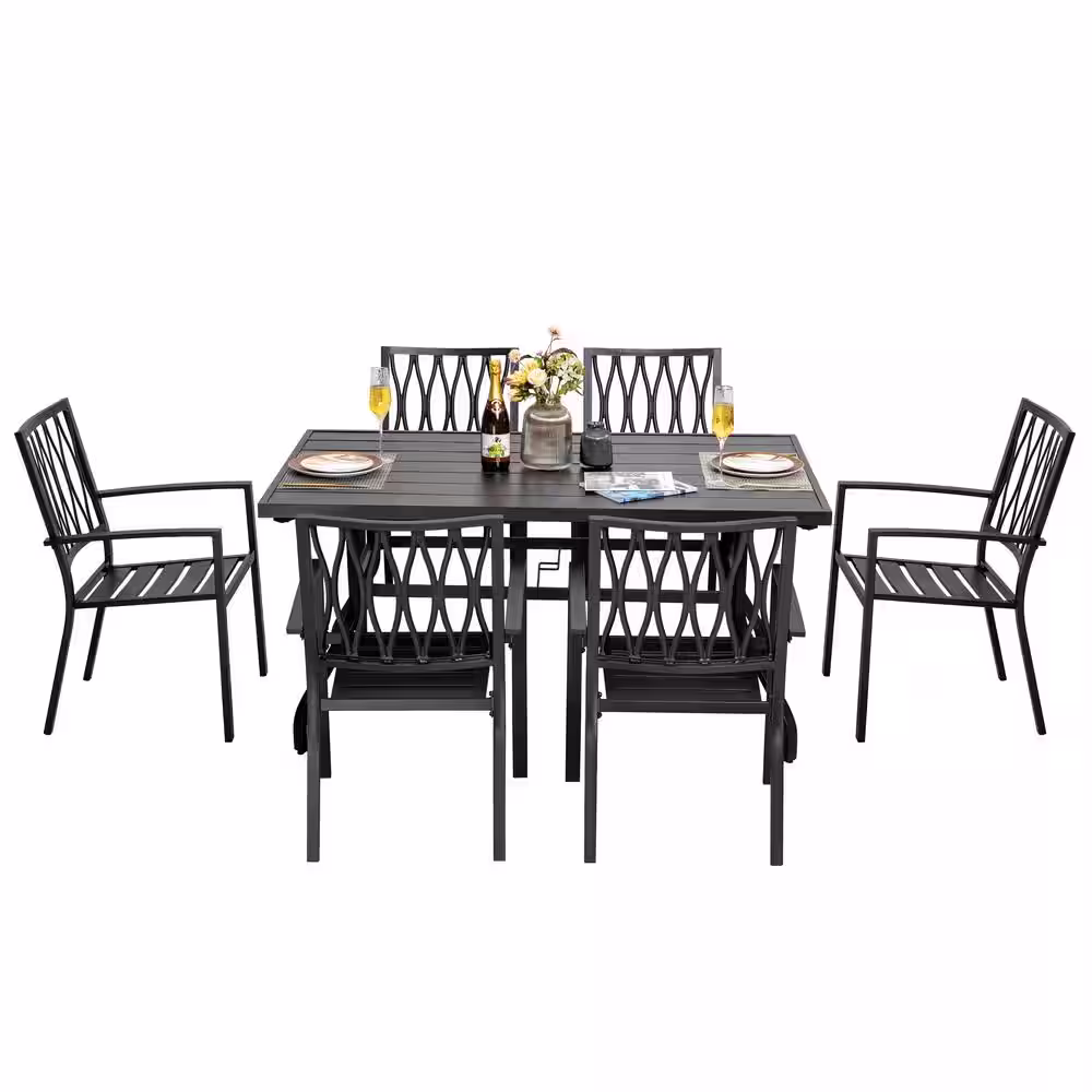 Nuu Garden 7-Piece Black Iron Outdoor Dining Set