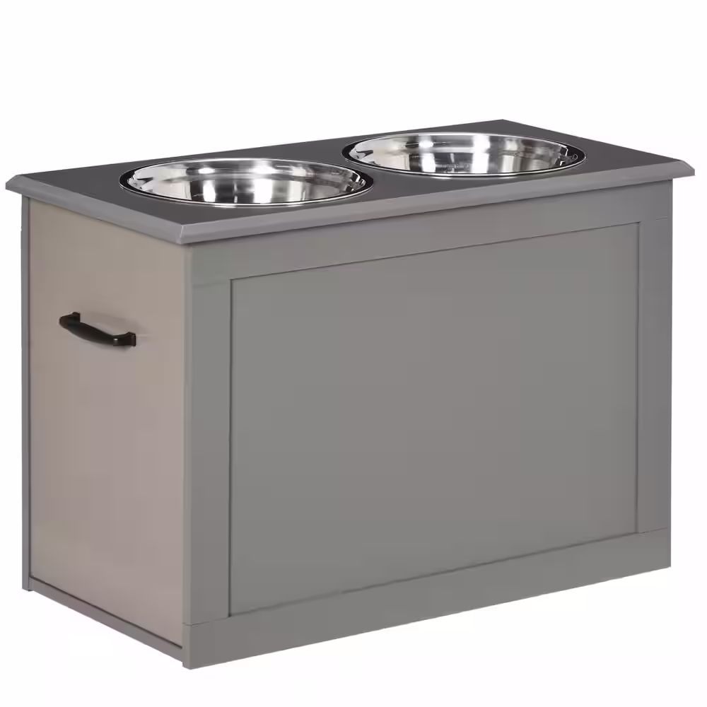 PawHut Raised Pet Feeding Storage Station with 2 Stainless Steel Bowls Base for Large Dogs and Other Large Pets in. Gray