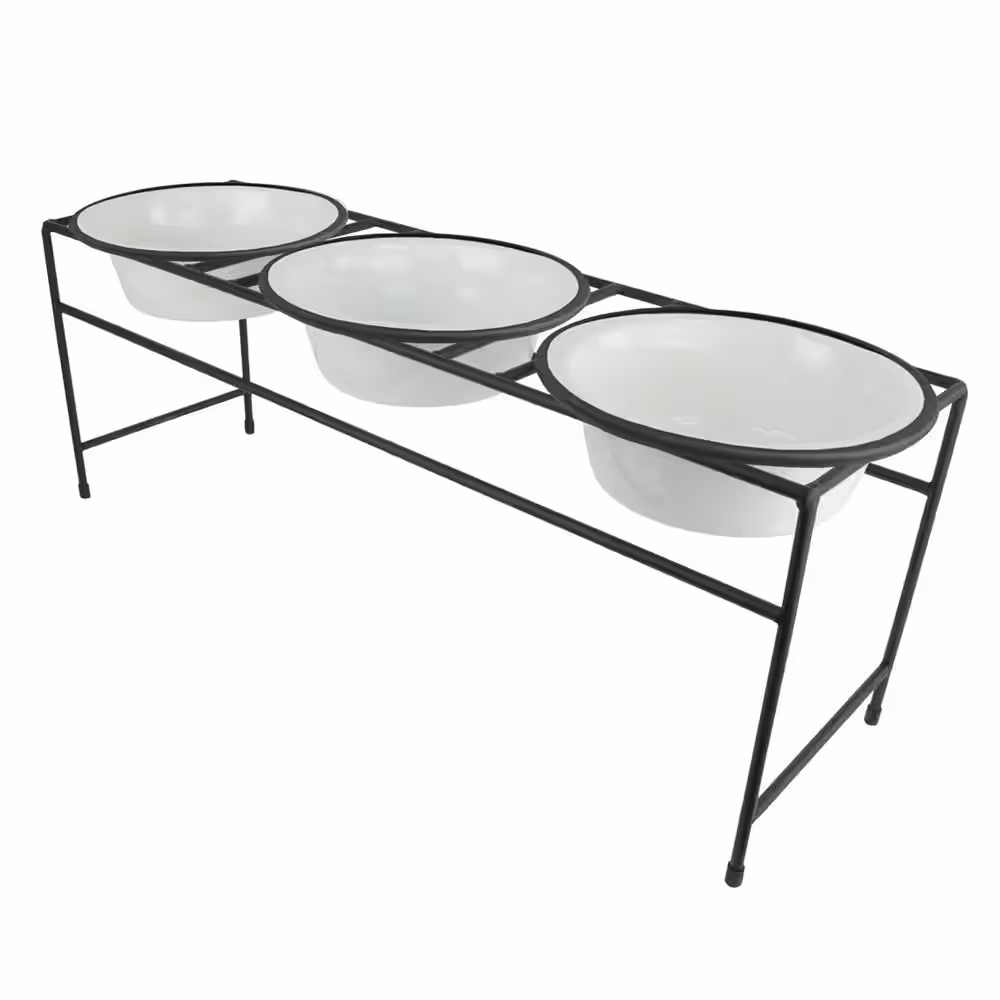 Platinum Pets Modern Triple Diner Feeder with Stainless Steel Cat/Dog Bowls, Pearl White
