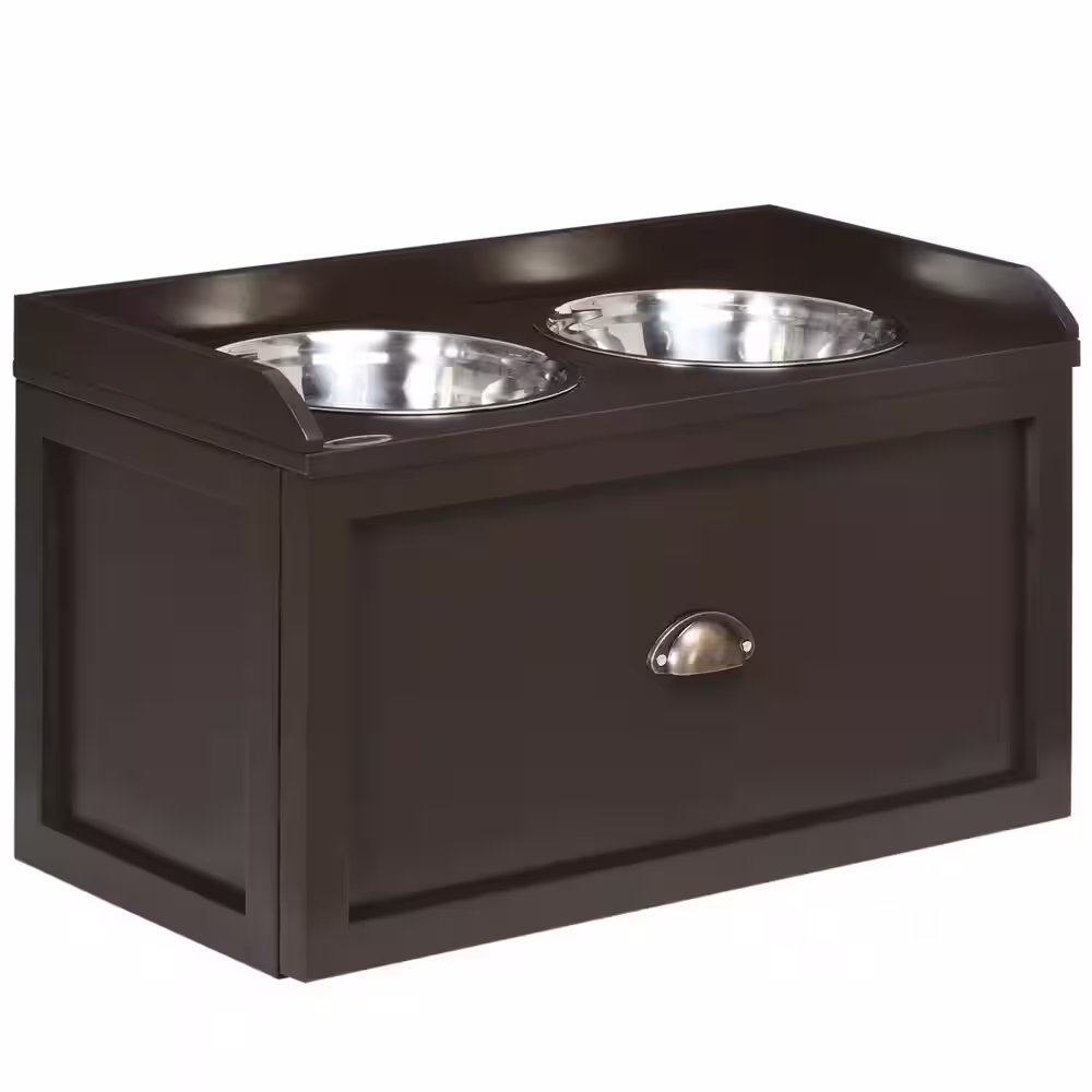 PawHut Large Elevated Dog Bowls with Storage Drawer Containing 21 L Capacity in Brown