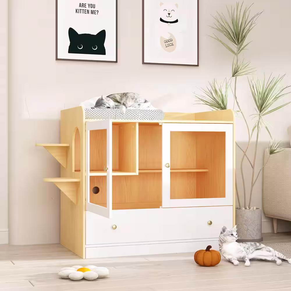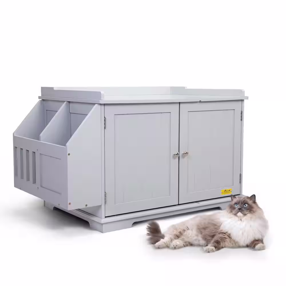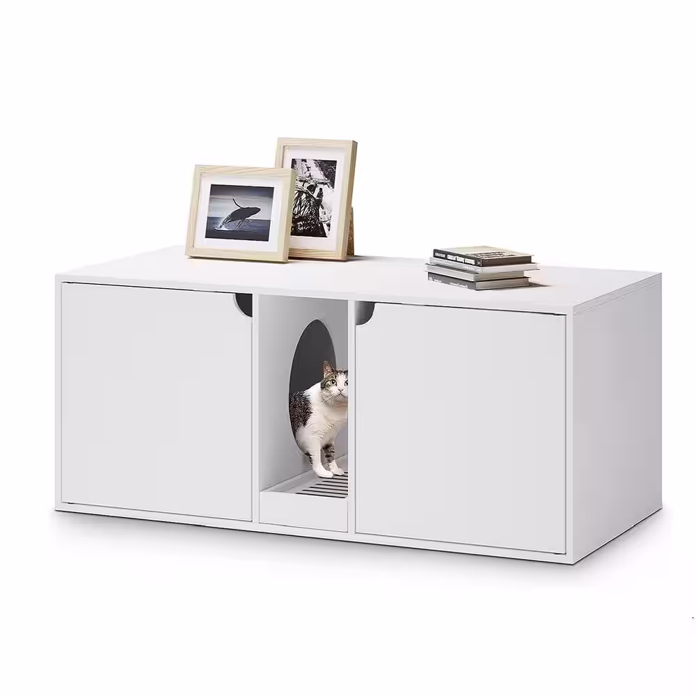 None Large Cat Litter Box Enclosure for 2 Cats, Indoor Wood Stackable Cat Washroom Cabinet Bench End Table Furniture, White