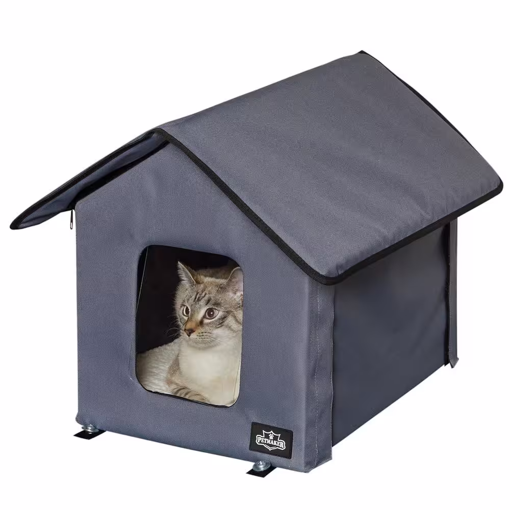 Petmaker Heated Cat House with Double-Door, Zippered Roof, Pet Heating Pad and Sherpa Cover, Gray