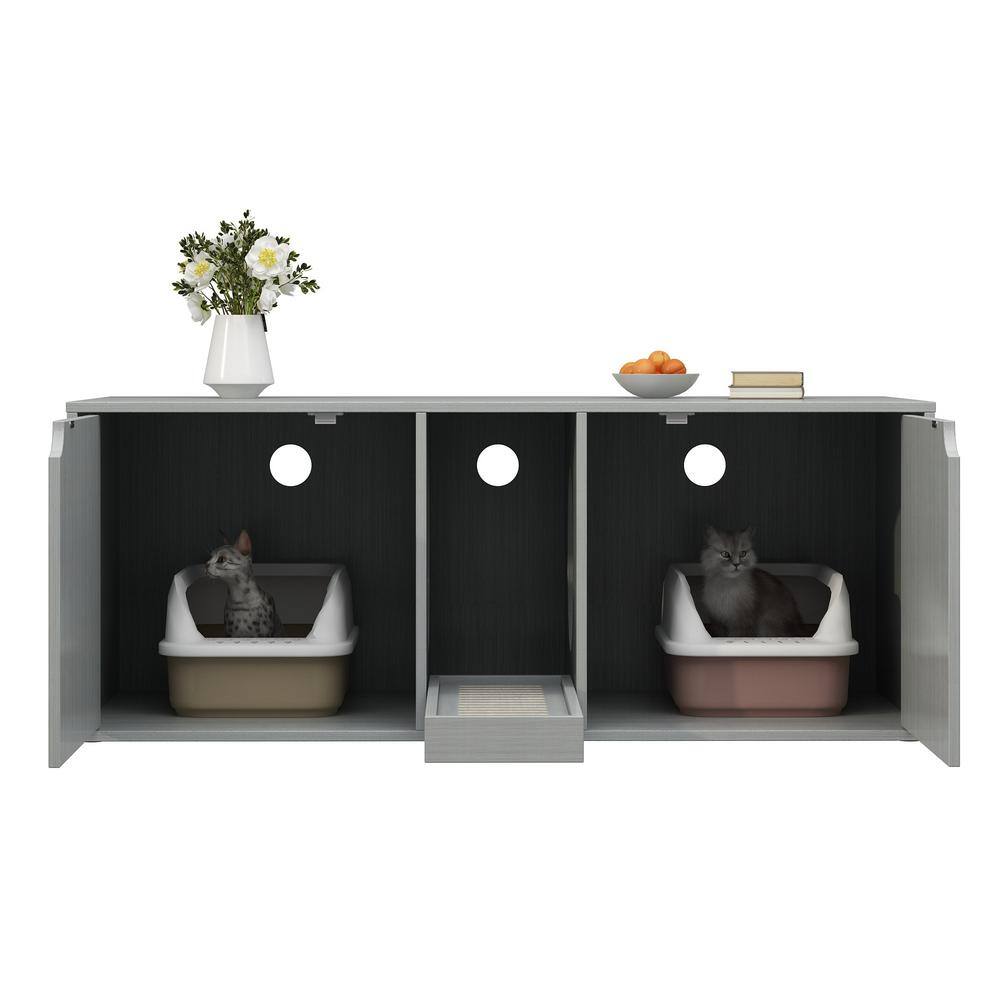 FUFU&GAGA Hidden Cat Litter Box Enclosure Furniture, Indoor Cat Washroom End Table with Double Room and Litter Catch, Gray