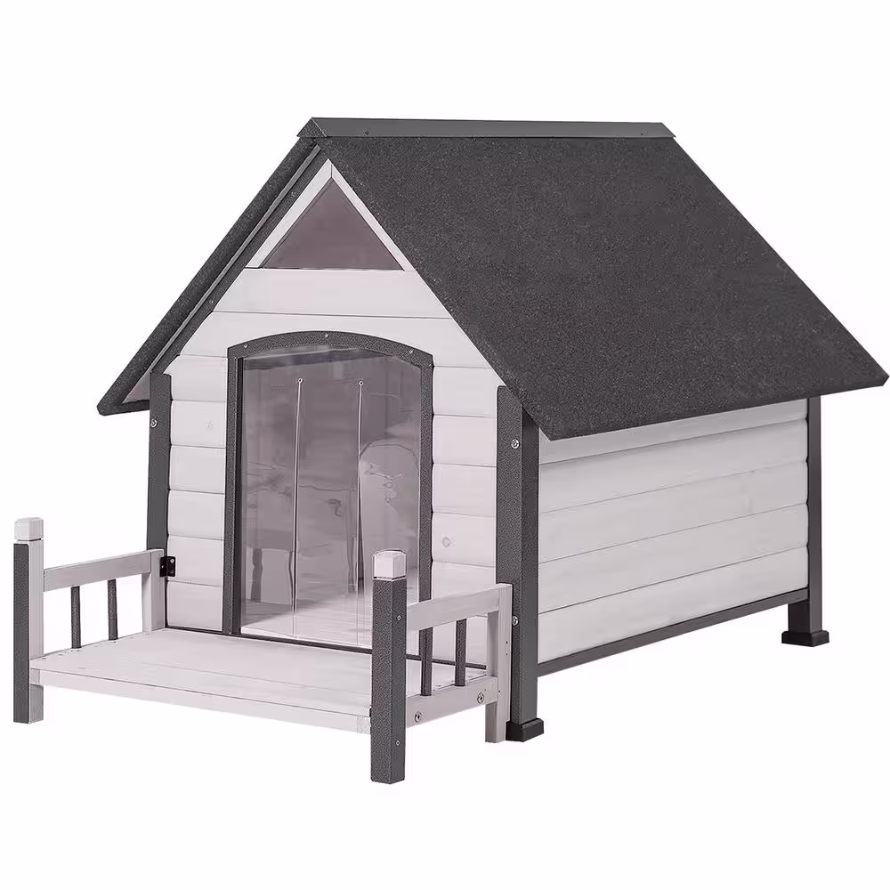 None Outdoor Dog House with Porch: Strong Iron Frame - Off-White