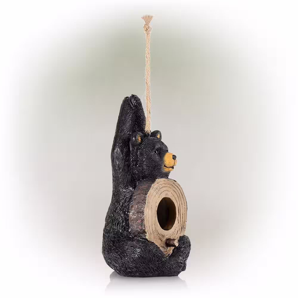 Alpine Corporation 10 in. Tall Outdoor Bear Shaped Hanging Birdhouse and Perch